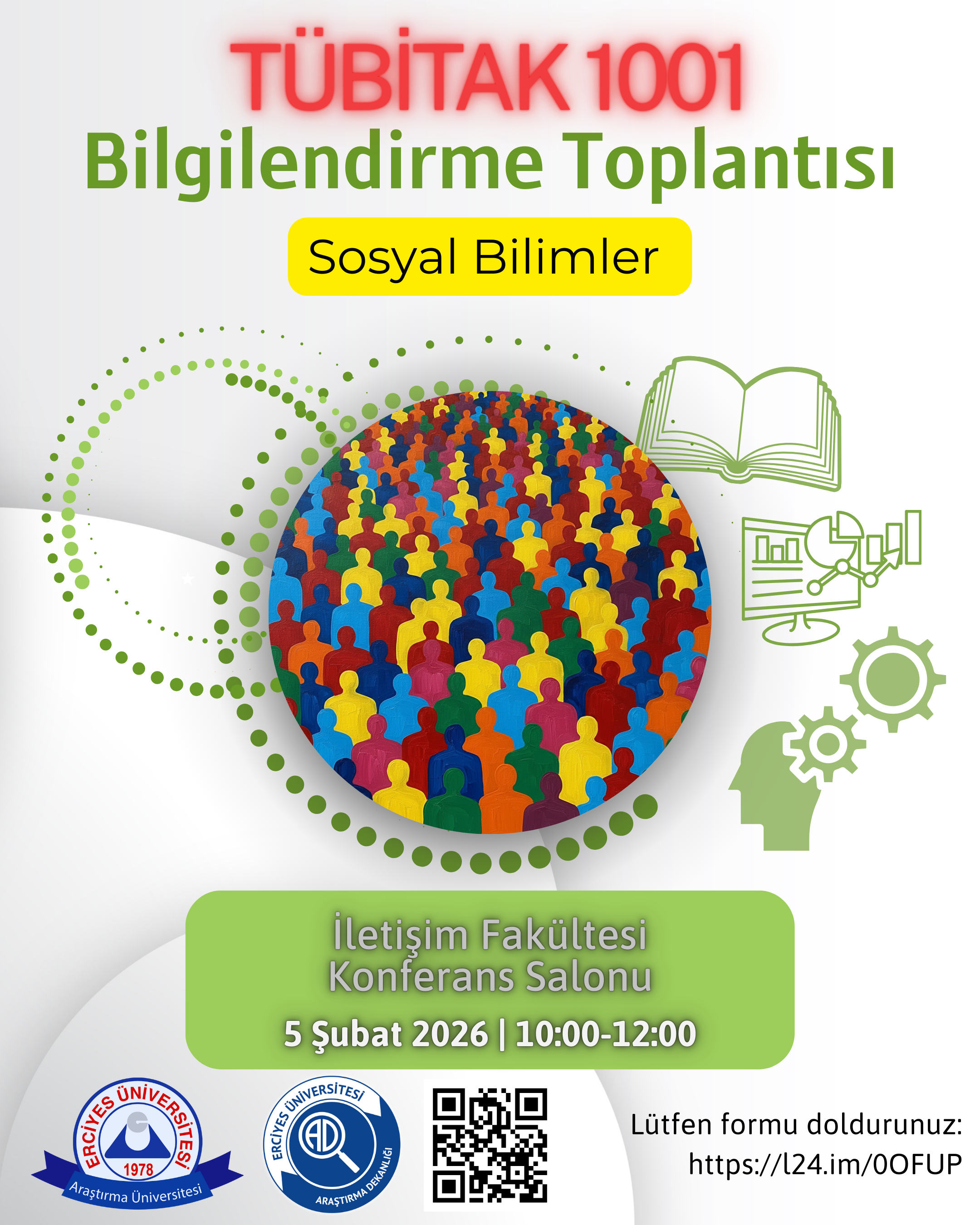5 Şubat 2026 Perşembe günü 10.00-12.00 saatleri arasında, İletişim Fakültesi Konferans Salonunda Araştırma Dekanlığı Proje Destek Ofisi tarafından TÜBİTAK 1001 projelerine dair Sosyal Bilimler alanına yönelik bilgilendirme toplantısı gerçekleştirilecektir. Toplantıda program hakkında genel bilgilendirme, başvuruda dikkat edilmesi gerekenler ve ret gerekçeleri hakkında sunum gerçekleştirilecektir.