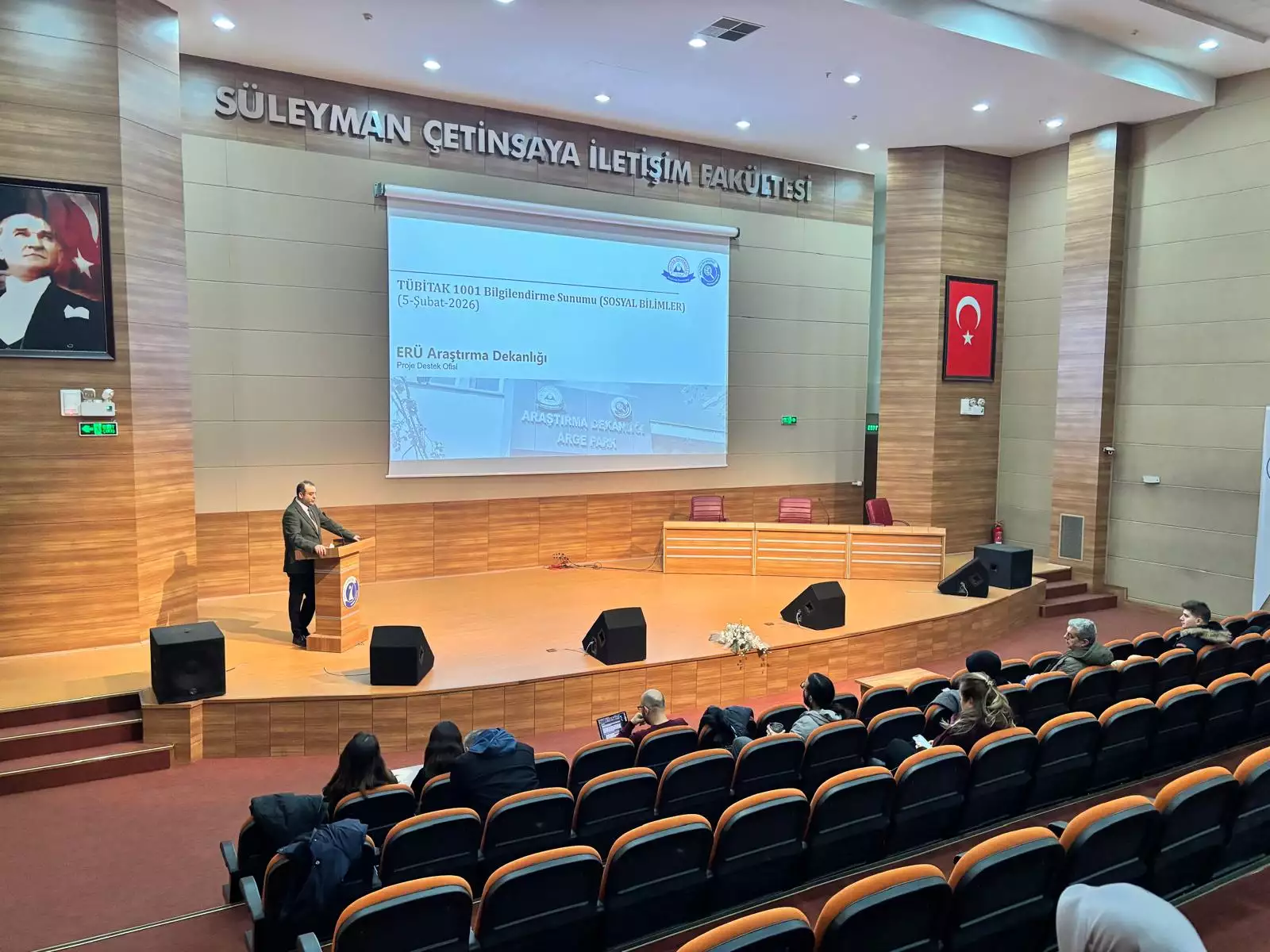 5 Şubat 2026 tarihinde Erciyes Üniversitesi İletişim Fakültesi Konferans Salonunda, TÜBİTAK 1001 Projelerine yönelik "Sosyal Bilimler" odaklı Bilgilendirme Toplantısı gerçekleştirildi.